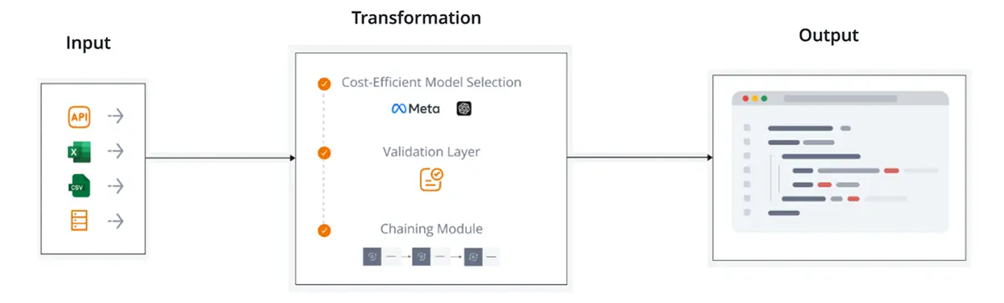 Roboshift specifically targets these needs by applying AI logic to standardize fields, eliminate redundancies, and give teams confidence that data is processed correctly. It supports offline multi-model (e.g., Llama, Pi, DeepSeek) and cost-efficient AI models for different stages. and ensures accuracy and consistency at every step. The AI usage is optimized for specific transformation requirements and no production data is exposed to the LLM. (offline LLMs and native cloud supported).