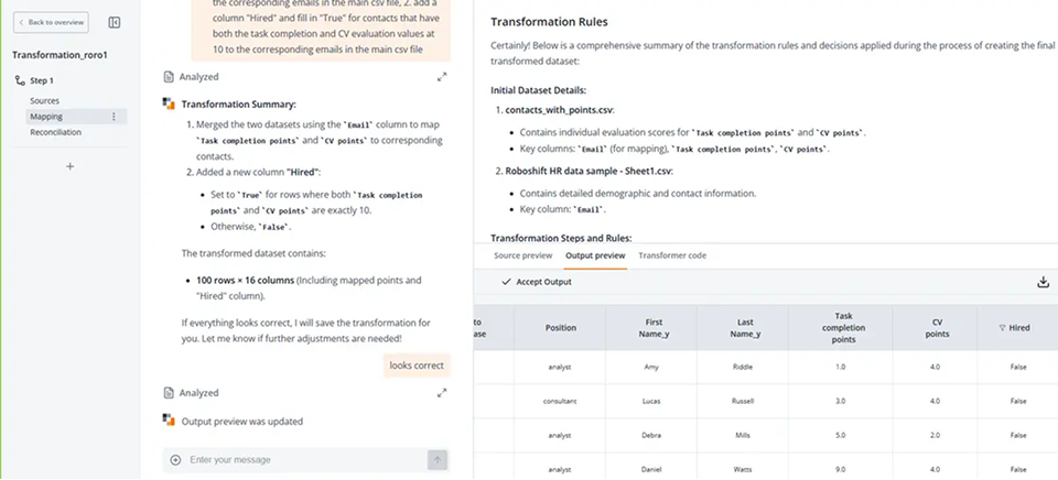 Roboshift presents a chat-based interface: users describe the desired output, and the service autogenerates the pipeline, applying field-level checks and producing an audit log. With real-time validation and industry-specific safeguards for finance and healthcare, it's very useful in regulatory industries.