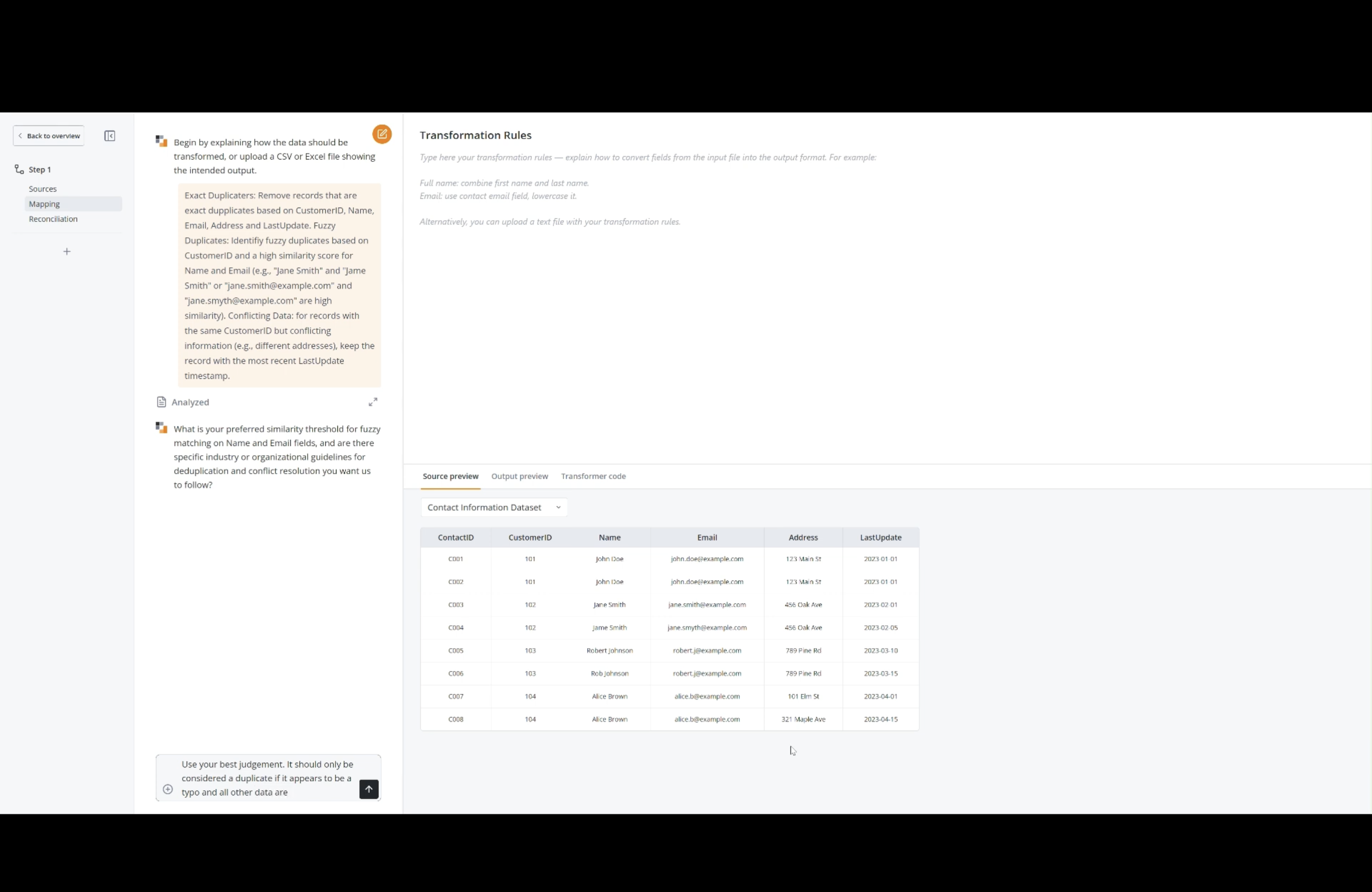 Tasks such as semantic field mapping, deduplication, or conditional rule creation are handled by high-capacity models.